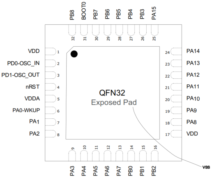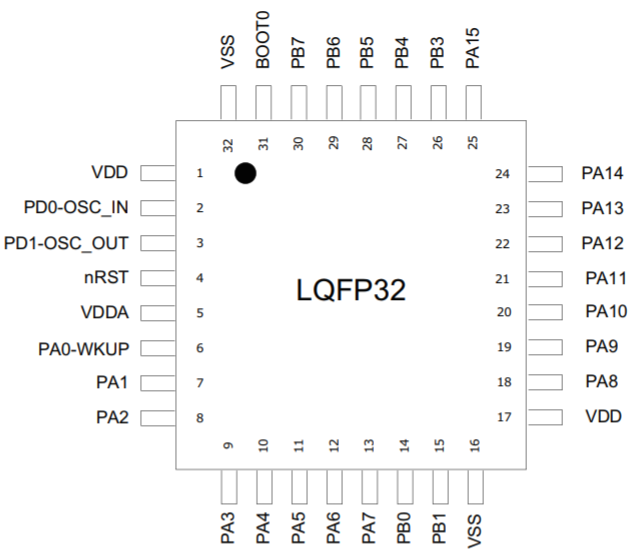 LQFP32 引腳分布 QFN32 引腳分布