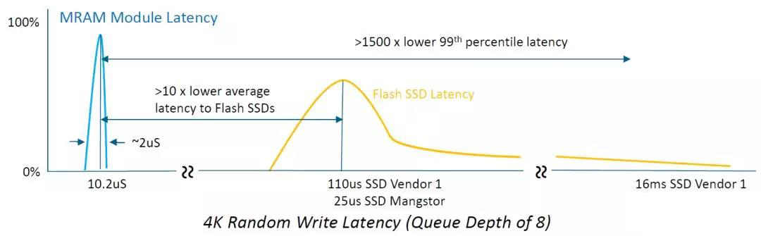 4. 隨機性能更高:MRAM是可以按字節(jié)隨機訪問的,而且隨機性能很高,所以作為寫緩存,提升IOPS;