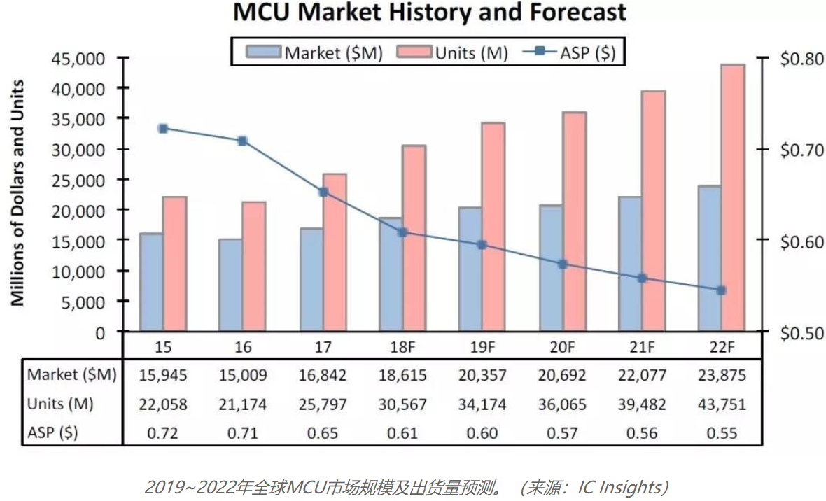 2019~2022年MCU市場(chǎng)規(guī)模出貨量預(yù)測(cè)