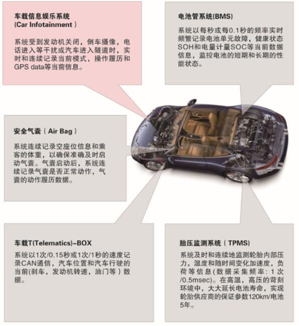 對于BMS(電池管理系統)這一新能源汽車的另一大核心技術來說,這些特性同樣重要。電池管理系統需要實時記錄和存儲數據,其系統將以每秒或每0.1秒的頻率實時和連續地記錄電池的重要數據(故障信息、健康狀況SOH和電量計量SOC等),同時監測電池的短期(最后幾個充電周期為60次/秒)和長期(電池的整個壽命)性能。舉例來說一般情況下電池組的電量保持在30%~75%表示運行正常,如果有不平衡的情況需要從其他電池組補充,此時系統需要檢測記錄電池組的電量、溫度、電壓、電流等數據,并且一次監測記錄的時間不宜過長。