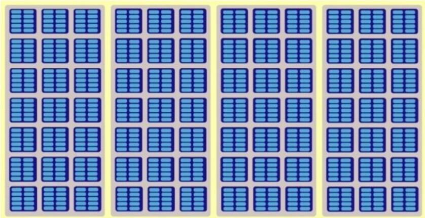 閃存陣列的簡化圖。黃色框突出顯示die,淺灰色為plane,深藍色為塊,淺藍色框則為page。該圖僅用于可視化層次結構,而不能按比例繪制。(HyperstoneYoutube頻道有更加詳細說明)