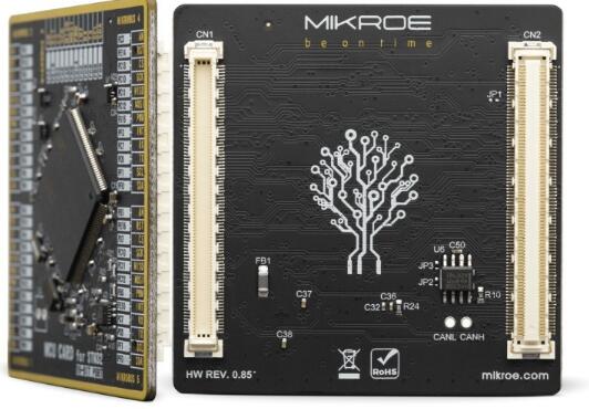 MCU卡是標準化的附加板,可以非常簡單地在配有MCU卡插槽的開發(fā)板上安裝和更換MCU。通過引入新的單片機卡標準,我們確保了開發(fā)板與任何受支持的MCU之間的絕對兼容性,無論其引腳號和兼容性如何。MCU卡配備了兩個168針夾層連接器,從而使它們甚至可以支持具有極高引腳數(shù)的MCU。遵循Clickboard™產(chǎn)品線公認的即插即用概念,其巧妙的設計允許非常簡單的使用。