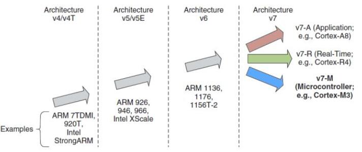 6.ARM結構的發展V4(ARM7)、V5(ARM9)、V6(ARM11)、V7A/R/M(Cortex系列)