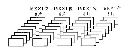 分析:64Kx8位,說明該存儲器是以8位構成一個字,因此,每讀出一個字,需要選中8片16kx1位的存儲芯片,而一片能表示16k,因此一共需要64/16=4片,根據組合的原理,一共需要4x8=32片。