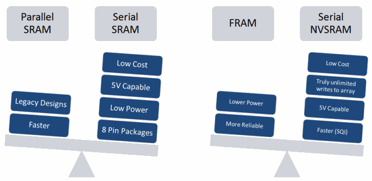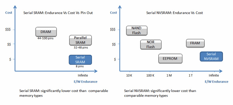 串行SRAM和NVSRAM在尺寸、電壓、速度、功耗和成本等方面帶來了諸多優(yōu)勢。